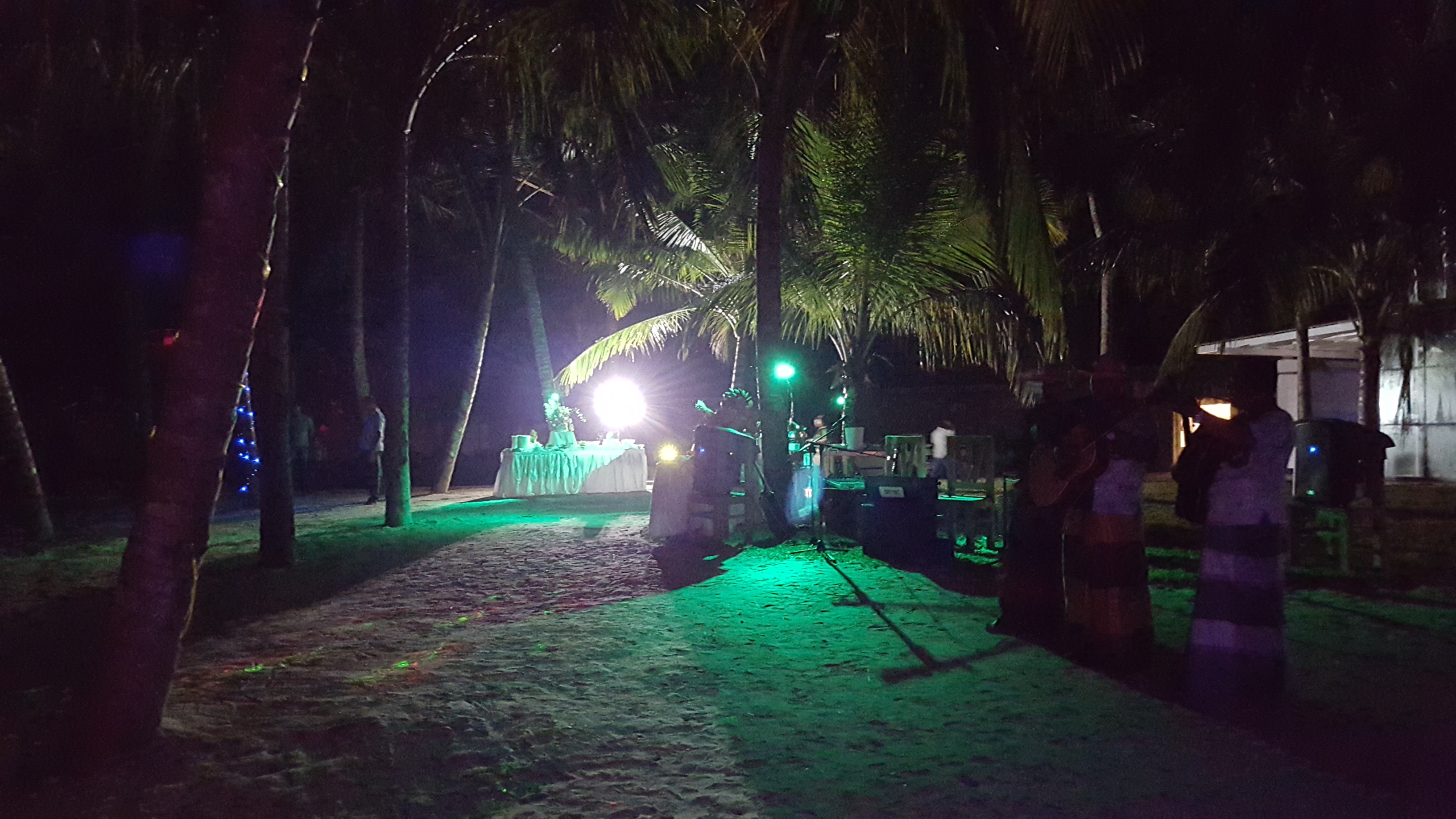 In unserem Hotel war heute ein spezielles Weihnachtsessen. Es gab ein Buffet und Livemusik und selbst der Weihnachtsmann kam mit ein paar kleinen Geschenken vorbei. Das Personal hatte sich große Mühe gegeben und die halbe Anlage dekoriert.