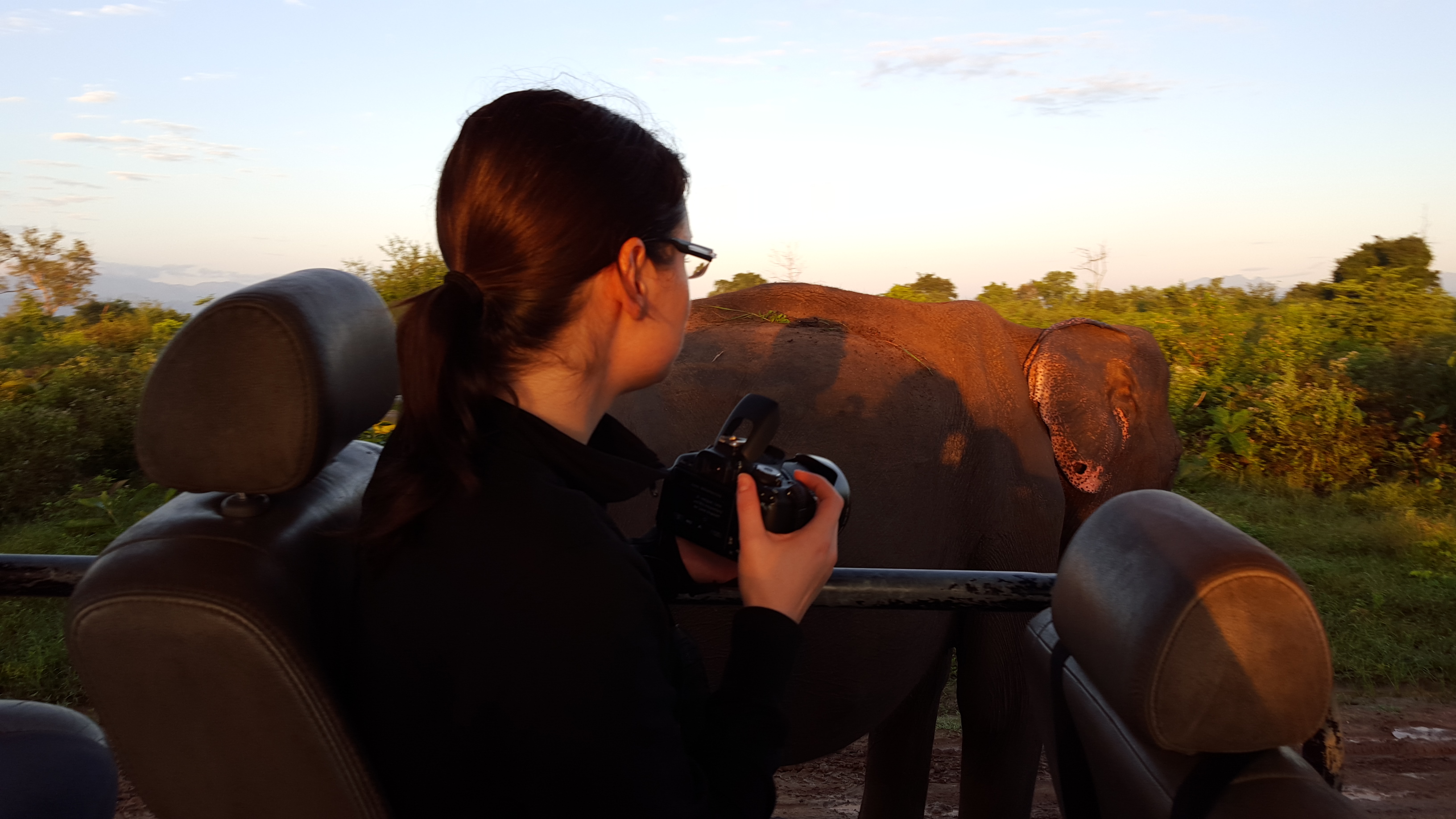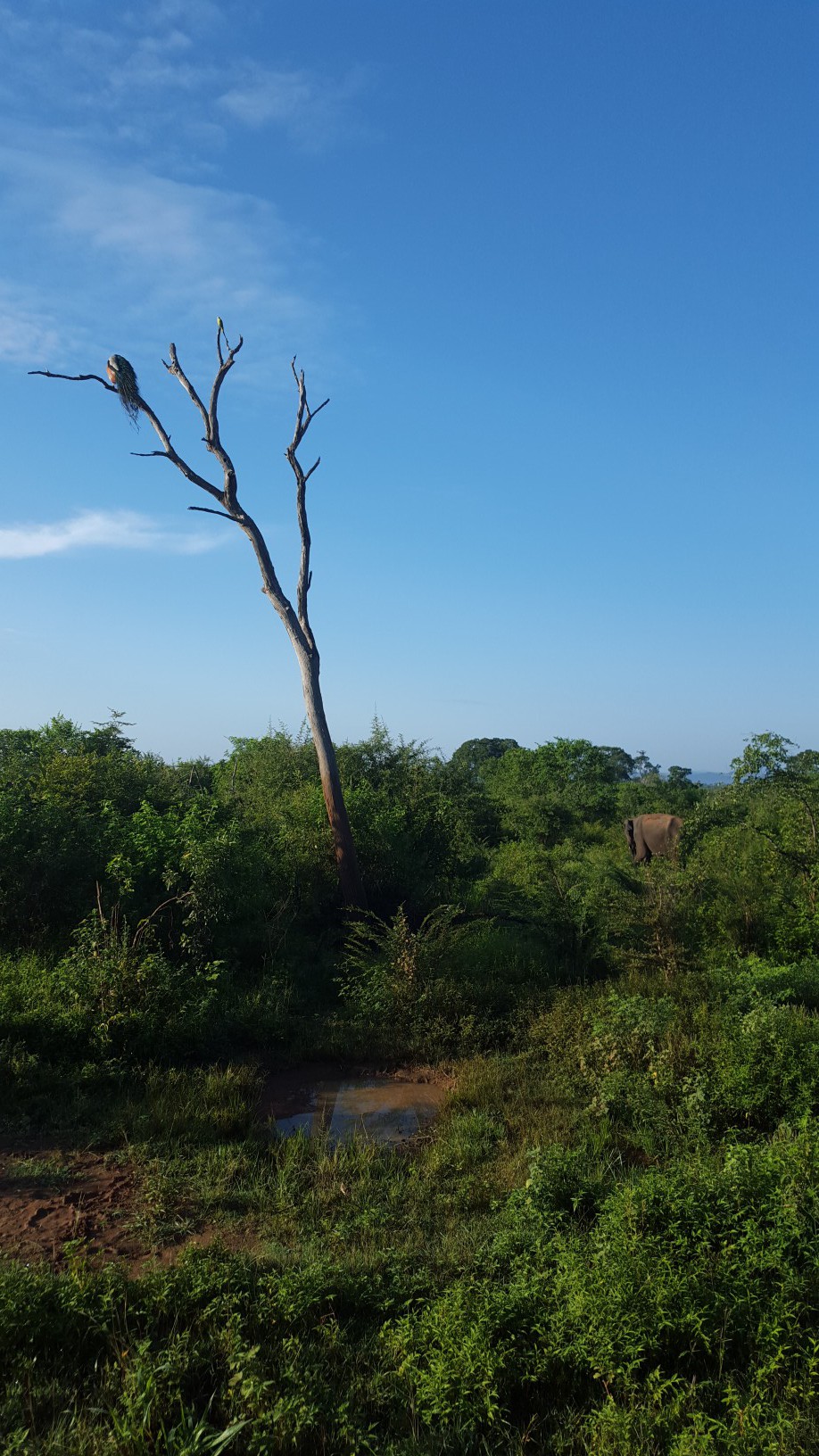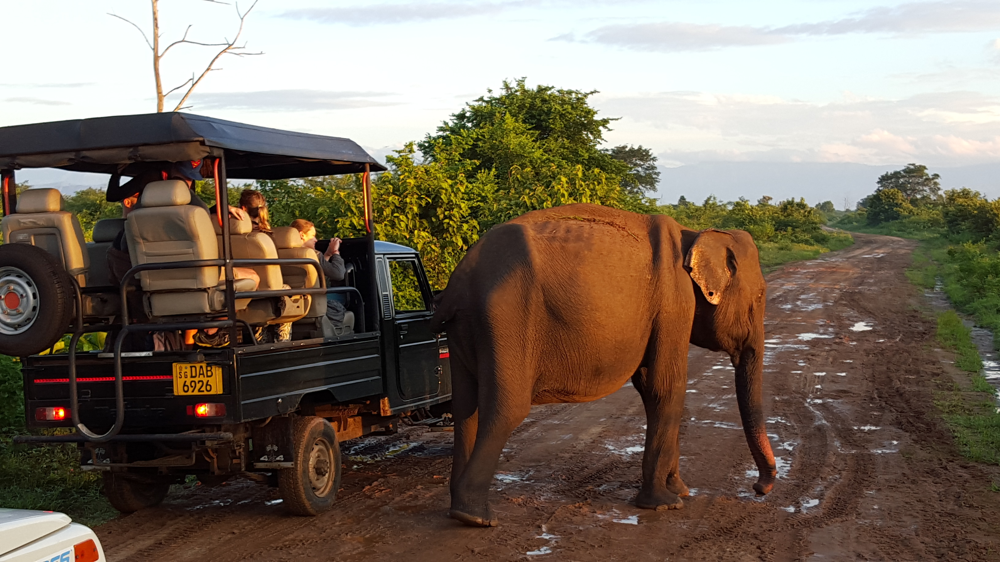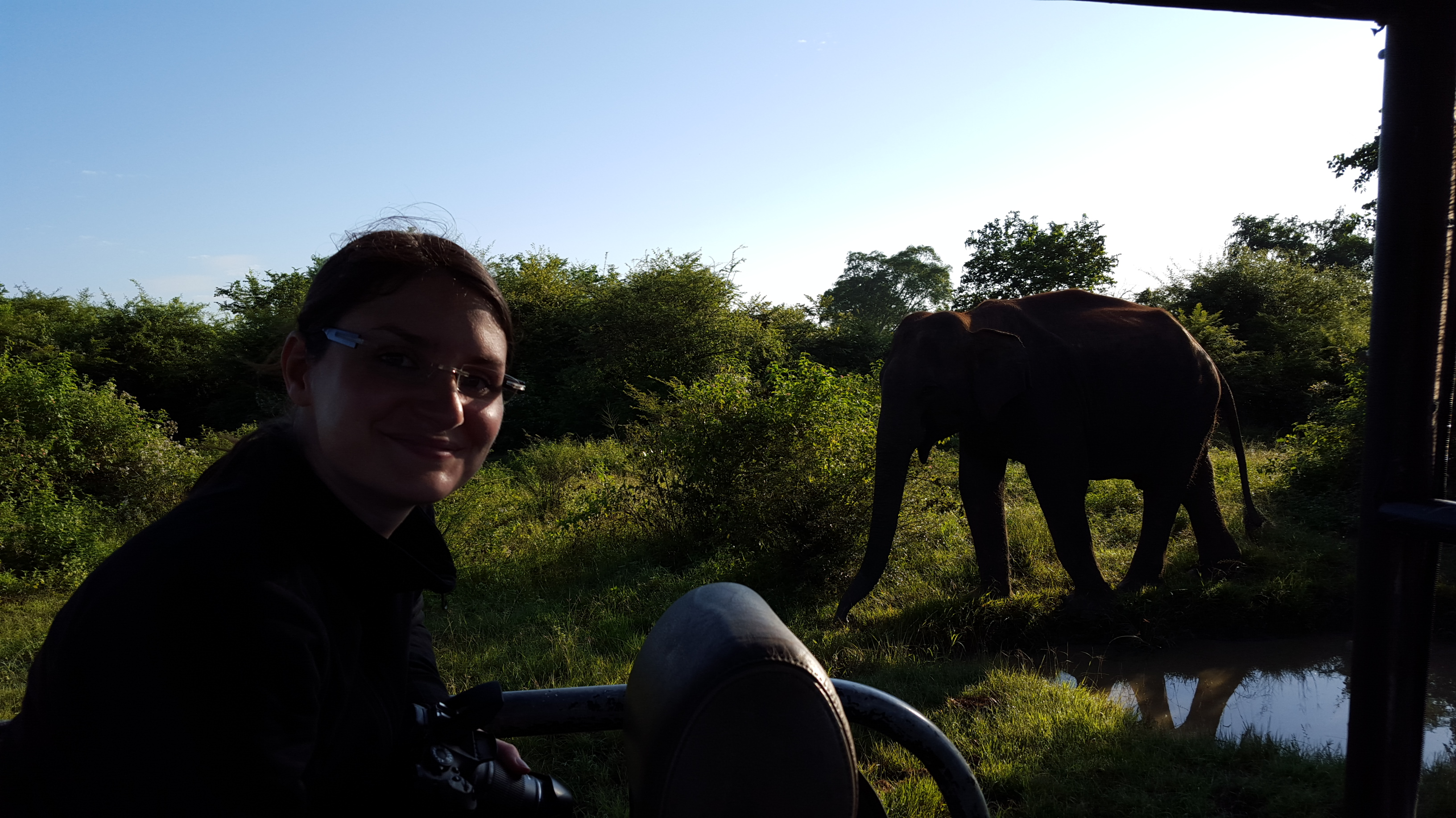 heute klingelte unser Wecker bereits um 5 Uhr, also 0.30Uhr deutscher Zeit. Unsere Safari durch den Udawalawe-Nationalpark stand an. Diese haben wir über unser Hotel „Elephant Trail“ gebucht. Pünktlich um 6Uhr ging es mit einem Fahrer und einem Jeep nur für uns Beide in Richtung Park. Nachdem wir den Eintritt von etwa 6100 Rupien (~40€) bezahlt hatten, gesellte sich unser Guide Madura zu uns, der uns auf der Fahrt begleitet hat. Die Entscheidung die Tour auf heute zu legen, war absolut richtig. Da es gestern Nachmittag stark geregnet hat, sagte Madura, dass er bei einer Tour seinen Gästen lediglich einen einzigen Elefanten zeigen konnte. Obwohl in dem Nationalpark über 700 davon leben. Naja, nicht nur Du hasst es, bei Regen raus zu gehen. 😉