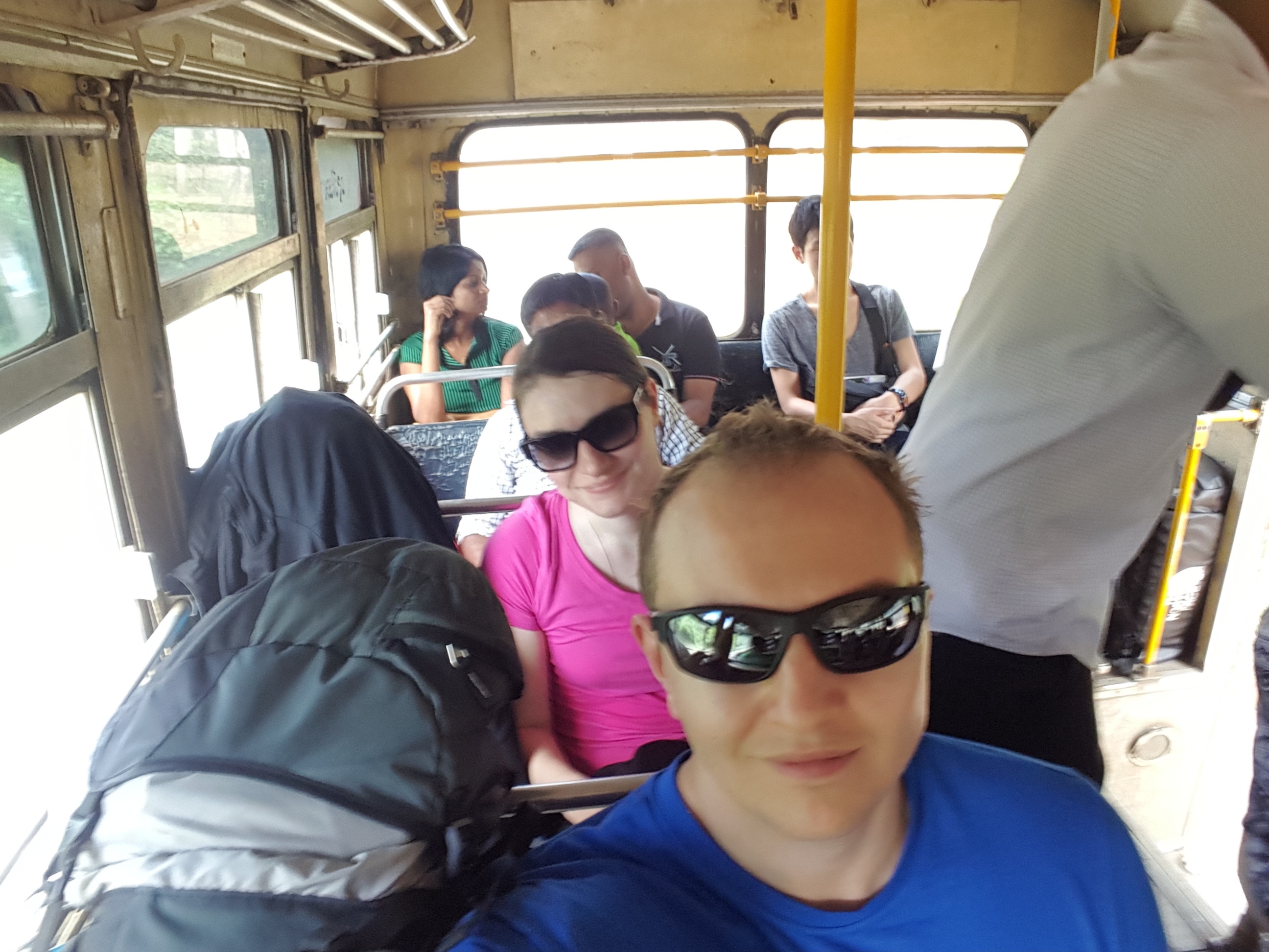 Als wir den total überfüllten Bus anhielten (hier muss man winken) waren wir etwas geschockt. Unsere Rucksäcke wurden auf anderen Taschen neben dem Fahrersitz gestapelt und wir quetschten uns zu den anderen, ausschließlich einheimischen Reisenden.