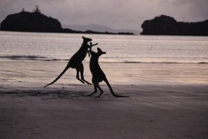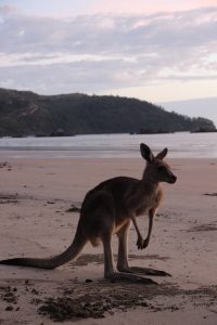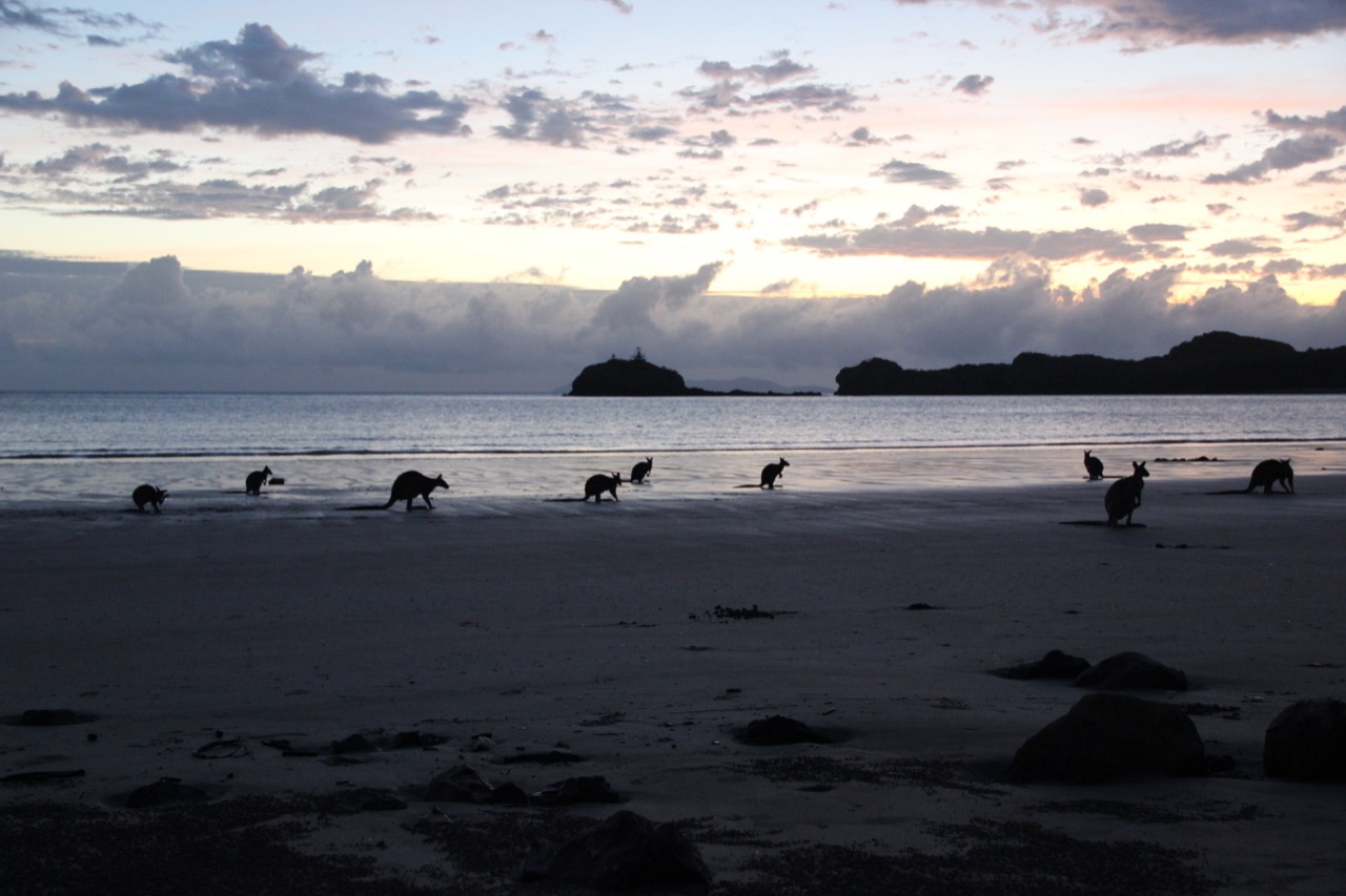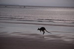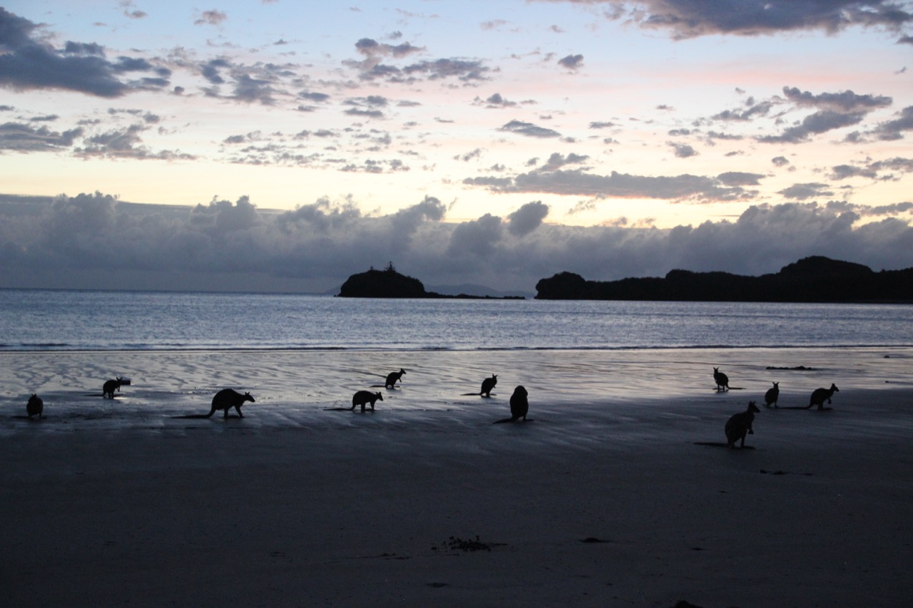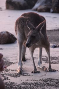 Das besondere dort – jeden Tag vor Sonnenaufgang lassen sich Kängurus am Strand beobachten. So auch heute!