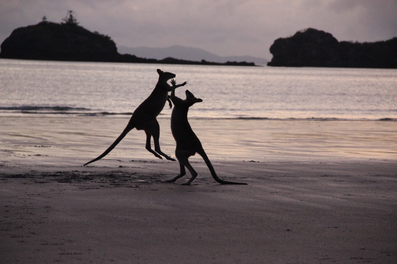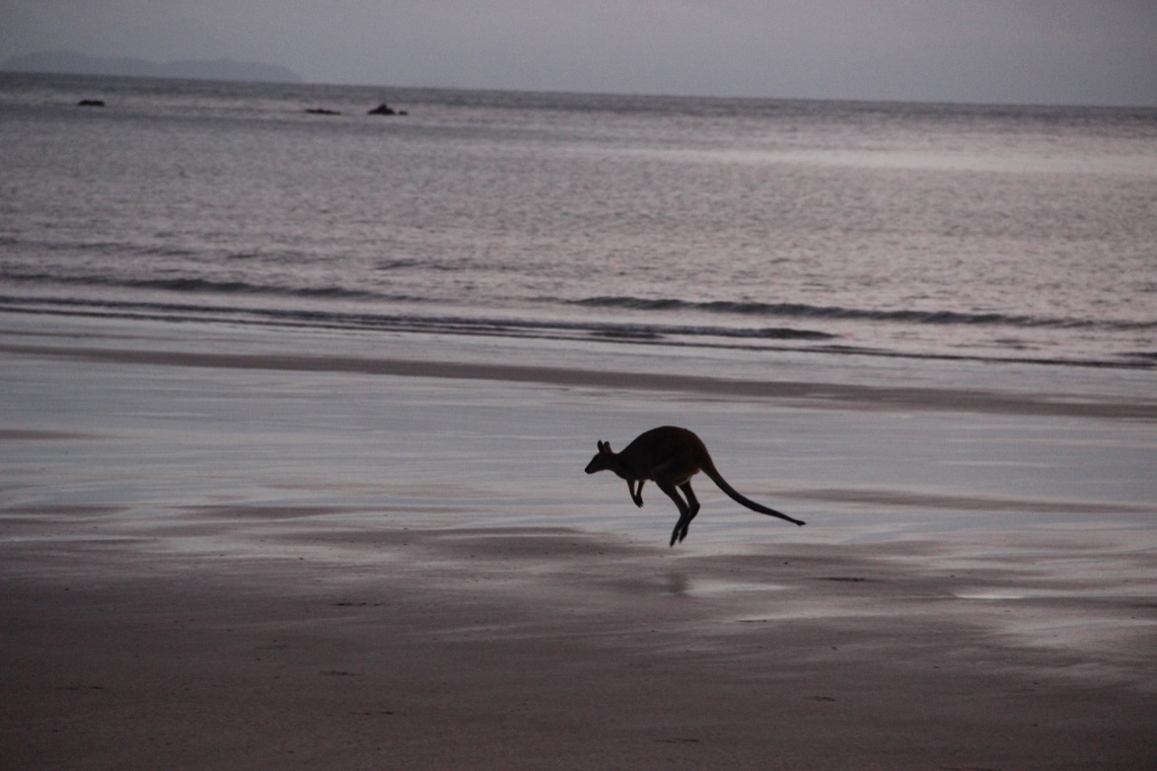 Aber auch der Strand ist total schön, auch wenn er ein bisschen von den Kängurus in den Schatten gestellt wird.