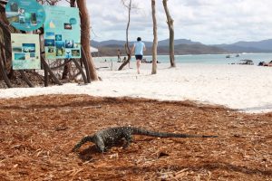 Die Whitsundays sind ein wichtiges Nist-Gebiet für Vögel aus aller Welt und der dort wird sich vermutlich über deren Eier hermachen.