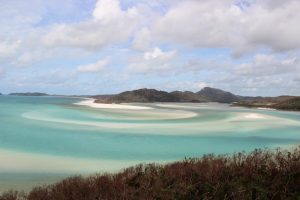 Danach ging es weiter. Auf den Inseln gibt es neben dem „Whitehaven Beach“ auch noch eine zweite Attraktion, den „Hill Inlet“. Das ist nicht bei allen Veranstaltern dabei, wir haben extra drauf geachtet. Aber es ist dort natürlich sehr voll. Kein Wunder, bei diesem Ausblick.