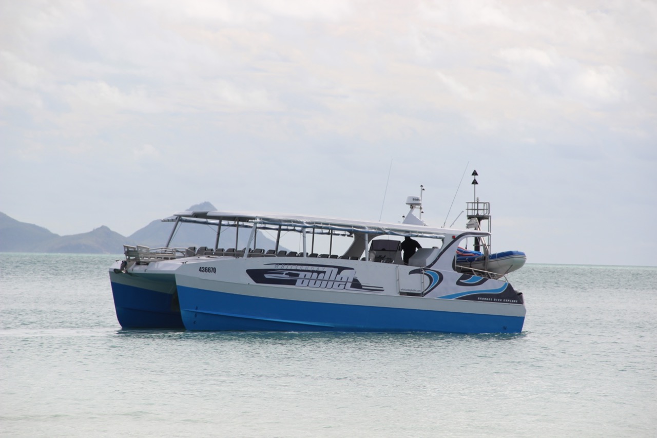 Es werden verschiedene Touren mit Segelschiffen, Katamaranen und anderen Booten angeboten. Wir haben die „Whitsunday Bullet“ genommen und das können wir auch weiterempfehlen. Es ist angeblich das schnellste Boot, das da raus fährt und selbst damit braucht man noch min. 1 Stunde. Zeit, die vielleicht am Ende fehlt.