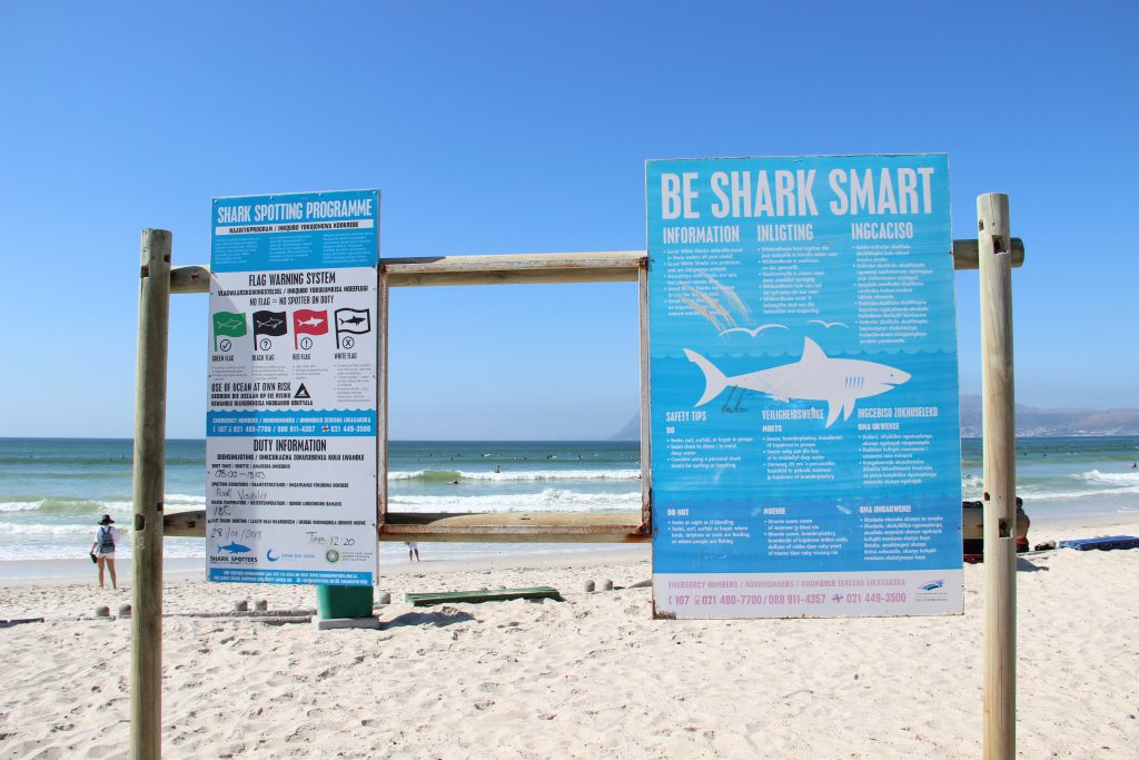 Nicht nur bei Surfern, sondern offenbar auch bei Haien ein beliebter Strand, aber es gibt hier Hai-Spotter, die mit Ferngläsern ausgestattet Ausschau nach Haien halten und Alarm schlagen.