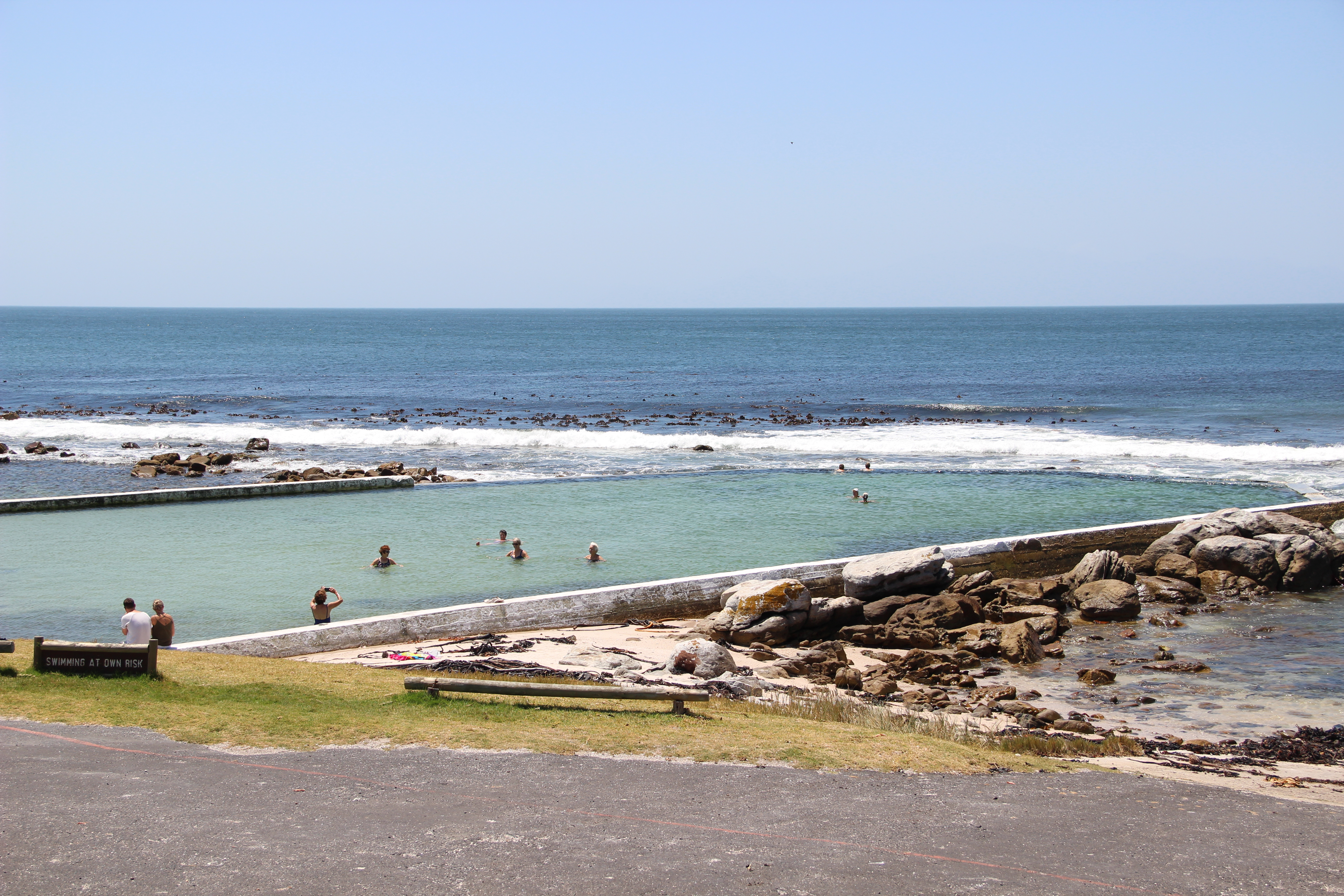 Wir beschlossen unsere Tour im Uhrzeigersinn zu machen, daher ging es erstmal nach Muizenberg, einem beliebten Surf-Spot an der False Bay. Der Strand von Muizenberg ist auch für seine bunten Umkleidekabinen bekannt.